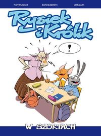 Rysiek jest chłopcem energicznym, pełnym optymizmu, uwielbia grę w kosza i ma szczególny talent do wpadania w kłopoty. Królik jest dla odmiany spokojny, a chwilami nawet zmienia się w gburowatego pesymistę. Pasjonuje się poezją, choć potrafi również godzinami przesiadywać przed komputerem. Album W szortach zawiera pięć krótkich opowieści o Ryśku i Króliku, w których chłopcy zmierzą się z okropnymi porywaczami poezji, spróbują swoich sił jako grafficiarze, zostaną wessani przez Internet, zagrają turniej z pająkiem, a do tego wszystkiego poznają smak pierwszej miłości!