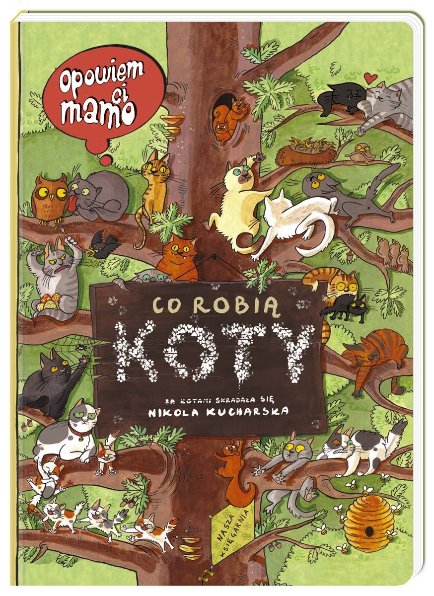 Życie grubego Gbura jest poukładane i spokojne, toczy się (dosłownie!) od miski do kanapy i z powrotem. Jego ludzie stwierdzają jednak, że Gburowi potrzebny jest ktoś, kto go rozrusza… i tak rodzina powiększa się o przygarniętą ze schroniska rudą kotkę Żabkę. Opowiem ci, mamo, co robią koty to przezabawna historia obrazkowa, a jednocześnie pierwsza kocia encyklopedia dla małego czytelnika, który nie będzie mógł się oderwać od przygód Żabki, Gbura, a także ich licznych przyjaciół. W tej książce czeka was jednak nie tylko czytanie i oglądanie rysunków, lecz również rozwiązywanie zadań i ćwiczenie spostrzegawczości poprzez wyszukiwanie poukrywanych przez autorkę szczegółów. Już wkrótce wy także się przekonacie, że co dwa koty, to nie jeden. Tylko czy Gbur uważa tak samo?