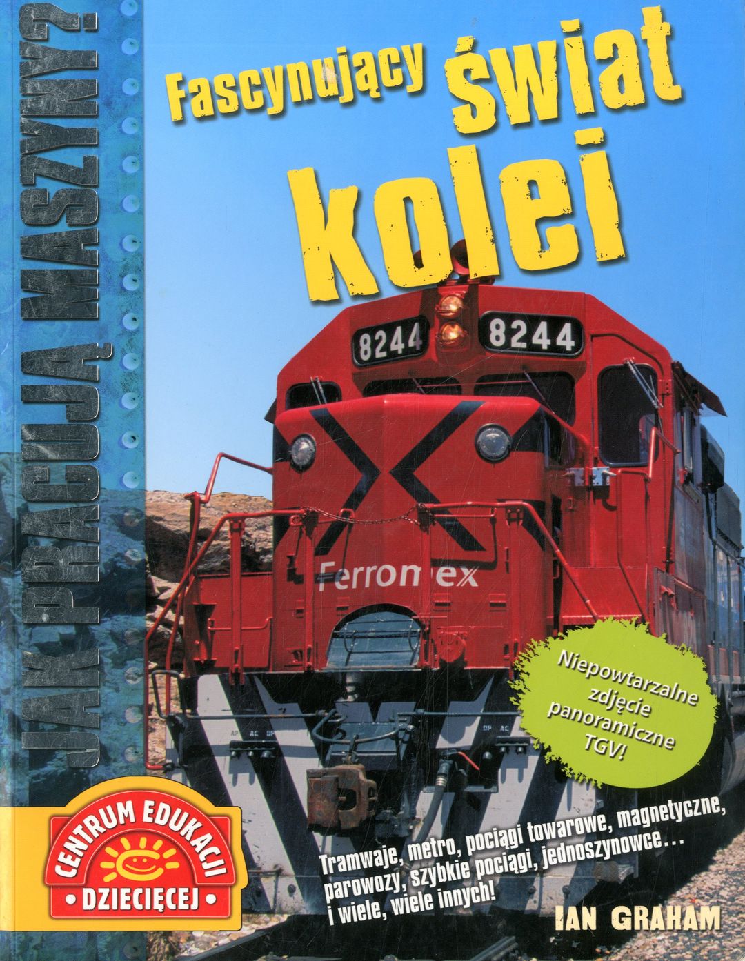 Maszyny, które jeżdżą po szynach, mają rozmaite rozmiary i kształty. Niektóre poruszają się ponad torami, a inne głęboko pod ziemią. Istnieją nawet pociągi bez maszynistów. Dowiedz się, dlaczego pojazdy szynowe są czasami nadzorowane przez satelity. Odkryj smak przygody w kolejce górskiej. Poznaj historię parowozów i najszybsze pociągi na świecie. Wskakuj i ciesz się jazdą! niepowtarzalne zdjęcie panoramiczne ze zbliżeniami istotnych elementów kolorowe fotografie prosty tekst słowniczek odnośniki do stron internetowych